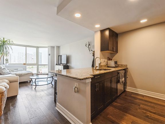 Deeded, assigned parking spot. 24/7 doorman and attentive on-site superintendent. State-of-the-art fitness center and outdoor pool. Resort-style lounging deck and BBQ area perfect for entertaining. Resident's lounge and community space with pool table. Children's playground and dog run.