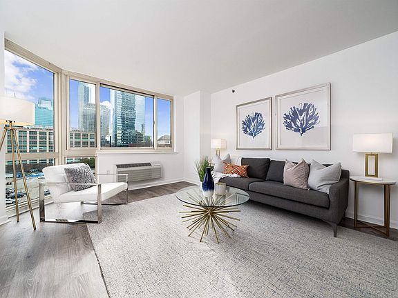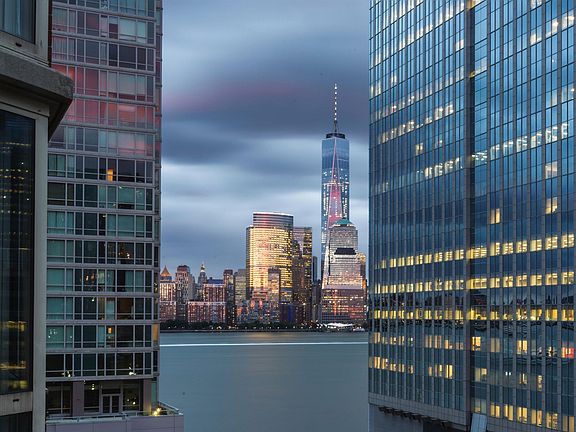 Discover your sun-drenched oasis in this sophisticated south-facing Mandalay condo with 2 bedrooms and coveted garage parking. Revel in stunning views of the WTC, lower Manhattan, Hudson River, and downtown JC. The 2 bed, 1 bath home boasts luxurious living space with two floor-to-ceiling bay windows, a renovated bath, and a kitchen featuring stainless appliances, Liebherr refrigerator, granite countertops, and in-unit washer/dryer (vented). The primary bedroom offers a generous walk-in closet. Enjoy the added convenience of a covered, well-positioned 2nd floor garage spot - on a corner with no adjacent cars on one side! Experience resort-like living with The Mandalay's amenities, including a fitness center, BBQ area, private park, children’s playground, and the largest outdoor pool in Jersey City. A quick stroll takes you to the lightrail, Exchange Place & Newport PATH, and the Harborside ferry for a seamless commute to the city. Plus, you're only 2 blocks from the new Whole Foods!