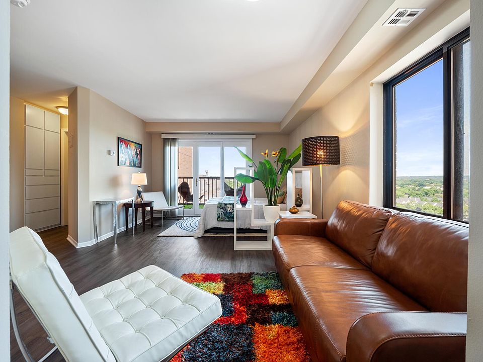 Falls Pinnacle 14th floor corner condo. Lots of sunlight and great views of the new NE skyline from 2 extra sets of windows. No common walls with any neighbor. Flat ceilings and LVT floors. Stone counters and stainless steel appliances. Huge kitchen has room for dining table or desk. Walk-in closet has lots of built-in storage and is big enough to be used as a non-conforming bedroom. Deeded parking. Pet friendly! The Falls Pinnacle is a private, secure building with 24/7 gym, pool, sauna, steam, hot tub, yoga, theater, greenhouse, sun decks, fire pits and 3 enormous garden terraces. Includes one reserved parking space and free car wash bay. PRIME location across the street from cobblestone streets of St Anthony Main, Mississippi River and Nicollet Island. Walk to Riverplace and East Hennepin shops. Everything is here - Surdyks, Lunds, Nyes, Sonder Shaker, Curry Corner, Flaming Thai, Punch Pizza, Chipotle, Aster Cafe, St Anthony Cinema, and more. Don't wait! AVAILABLE August 1st, 2024. Renter is responsible for Electric and Cable