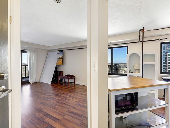 Huge Falls Pinnacle corner studio on 17th floor. Custom floorplan. No common walls with any neighbor. Floor to ceiling glass doors lead to private balcony. Loads of natural sunlight from 2 extra sets of windows. Fabulous unobstructed views of the new Northeast skyline, with modern luxury highrises and hundred-year-old historic charm. Tons of storage. Walk-in closet big enough for a bed. Building has COMPLETE set of amenities including deeded, secure indoor parking, 24/7 gym, indoor pool, sauna, steam, hot tub, yoga, party room, lounge, library, movie theater, and 3 large sundecks on garden terraces. Private, secure, pet-friendly. Plus, PRIME East Hennepin neighborhood along the cobblestone streets of St Anthony Main, Riverplace, the Mississippi River and Nicollet Island. Enjoy iconic shops like Surdyks, Kramarczuks, Nyes, Lunds, Sonder Shaker, Curry Corner, Flamin’ Thai, Punch Pizza, Chipotle, FRGMT Coffee, Aster Café and so many more. Rent it to others, or buy for your own fun!