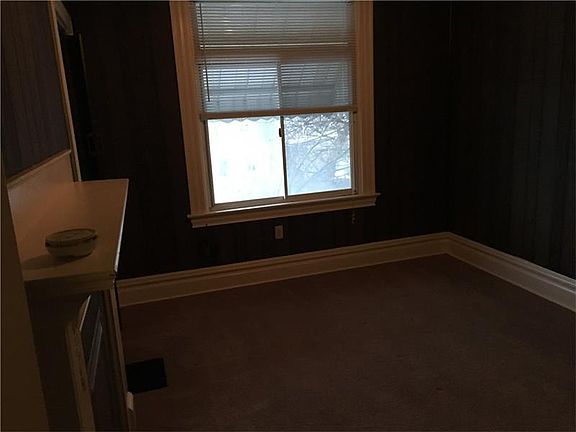 2 car garage with new garage doors-1 garage door opener, front and back porch, small yard in rear. New downspouts in front and new porch roof. Front porch freshly painted. House has new electrical wiring and breaker panel.