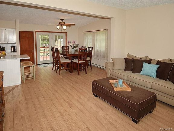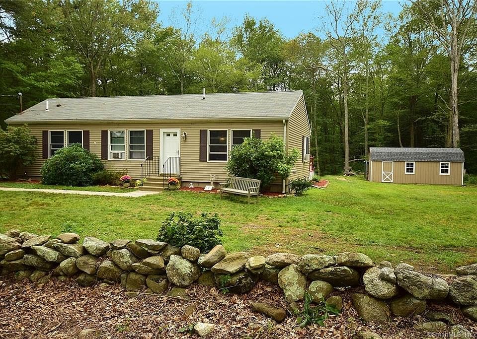Fabulous open floor plan Ranch on 4.75 acres! It's all been done - move-in ready! Living/dining/kitchen with vaulted ceiling and French doors to first deck. Great flow! First floor family is 16X24 with cathedral ceiling and walk in closet. French doors to second deck. Could be nice in-law, currently the master bedrm. Rooms are all nice size. Updated throughout: Entire house professionally painted 8/17 * Kitchen updated 2017 includes custom counters, island, backsplash, SS frig * Baths updated 2017, Tile floors, vanities, lights and mirrors * Roof and skylights 2015 * High density laminate flooring throughout the home - 2015 * Dutch style shed 12 X 24 * Harman P68 Pellet Stove with top of the line thermostat $6400 * decks painted 2017. Homeowner uses pellet stove as primary heat - electric bill in winter avg $100, summer $200 due to A/C. Woodstock Academy is a private school which is the High school for Eastford. Town pays the tuition. Property on dead end road, very private. Great house - great lot!