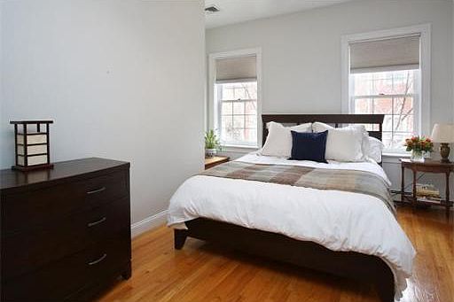 Beautiful 2BR/2BA condo located near desirable Training Field Park. Elegant living room features a gas fireplace, handsome wainscoting and a sunny exposure. Spacious kitchen with granite countertops and maple cabinetry is open to the charming dining room with views up to Training Field. Master bedroom features a private marble accented bathroom with whirlpool tub. A private deck is conveniently located off the kitchen and a spectacular common roof deck with city and harbor views is a short walk up. Central air conditioning. Great storage with easy access from street level.