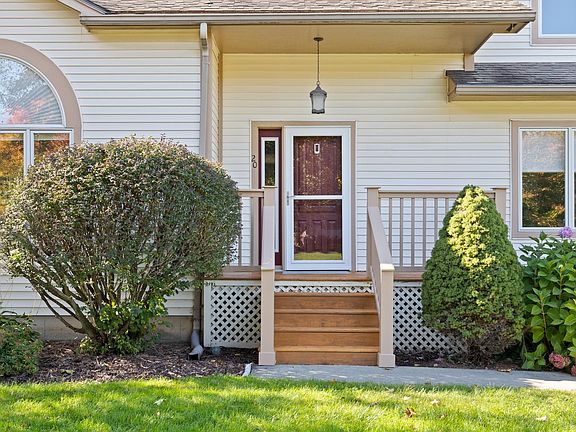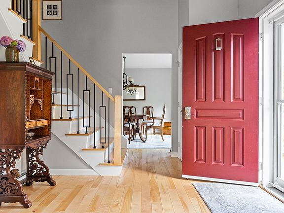 Stunning Colonial in the heart of Butler Farms! This four-bedroom home's interior was fully remodeled in 2019, including wiring, Pella windows, kitchen, baths, floors and fixtures. It offers plenty of space to spread out and is one of the most move-in-ready homes you'll see this season. Soaring ceilings greet you as you step inside the foyer, welcoming you to a house designed to flow through its open spaces while still offering a multitude of dedicated rooms. Vaulted ceilings and large windows define the sunken living room, where an abundance of light bathes the gleaming yellow birch floors. A separate family room lies behind this space, and off the back of the house sits a four-season sunroom, cozy and warm thanks to the natural gas heat stove. The kitchen offers cherry cabinetry, matching stainless appliances, a wine fridge, quartz counters, a sizable island, and a breakfast nook. Sliding glass doors lead to the back deck for convenient grilling or entertaining. A formal dining room, laundry/mudroom, and half bath complete the main level. Upstairs you'll find a spacious and contemporary primary suite with tiled and glass-enclosed shower, three other bedrooms, and an additional full bath. The extra deep garage can fit three cars, and a roll-up door in the back allows for easy mower storage. A small brook abuts the rear of the property, tucked back behind the well-maintained yard, thoughtful plantings and willow tree. This is a standout home in an incredible location.
