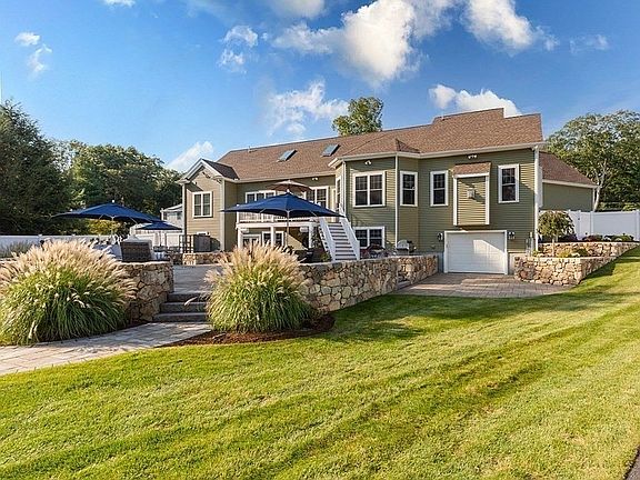 *OPEN HOUSE SAT & SUN 1-3* Stunning Cape w/ much sought after 1st floor master! This 4 bedroom, 3.5 bath, 3 car garage home was custom built by owner, and is an entertainer's delight w/ it's open floor plan and backyard features! Kitchen contains luxury appliances (Thermador, 2 Fisher & Paykel dw), upscale cabinets w/ under cabinet lighting, walk-in pantry & gorgeous granite counter tops; open concept living room w/ wet bar/ wood wainscoting/stone fireplace; 1st floor master suite w/walk-in closet and bath w/ steam shower; two additional 1st floor bedrooms connected by Jack & Jill full bath with quartz counters; 4th bedroom & bonus room on 2nd floor; expansive back deck & patio area with over-sized fireplace & pizza oven, all overlooking an incredible backyard with breathtaking landscape (with irrigation) & hardscape. Sonos sound system. Additional room to expand over garage or walk-out basement for in-law with private garage. All of this located just a stone's throw from Borderland