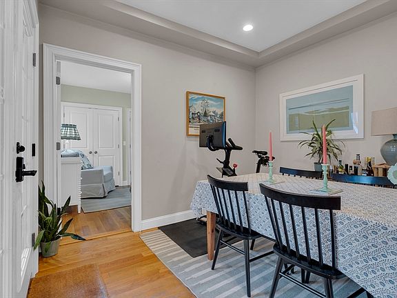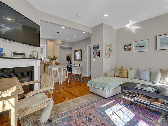 Beautiful 2 bedroom/2 full bathroom duplex features smart open floor plan and the modern amenities you're looking for! Gracious corner living room features gas fireplace, original wide pine floors, and is filled with natural light. Separate dining area directly across from French doors that lead to lovely private patio. Stainless steel, center-island kitchen with granite counters and plenty of cabinet and counter space is open to the living area, perfect for easy entertaining. Two spacious bedrooms with custom closets including primary with ensuite bath and exposed beams. This charming and wonderfully located home is close to everything the neighborhood and city have to offer!