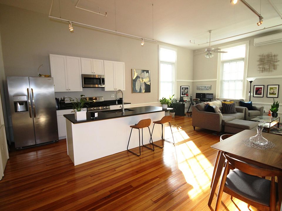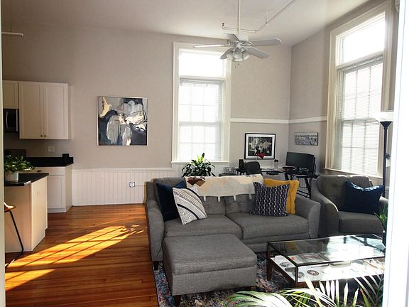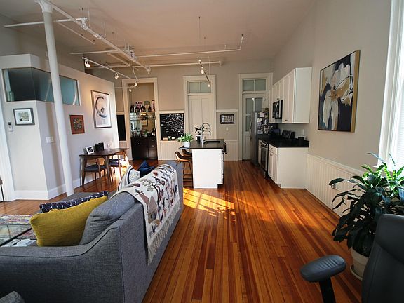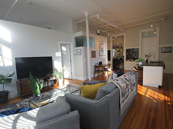 Available April- Head-turning style greets you at the door in this former 19th century schoolhouse which has been converted into 10 loft apartments. Loft #200 is absolutely breathtaking! It's expansive open concept is ideal for entertaining! The kitchen has stainless appliances, granite counter tops and a wet bar. There are 12 foot cathedral ceilings and over sized windows which flood the open concept space with incredible daylight. The loft-style bedroom features a spacious walk-in closet and the spa-like bathroom is complete with in-unit stackable laundry. There is also high efficiency heating and cooling. The original chalkboard walls in the hallway add a nostalgic touch. Gleaming hardwoods throughout. Outside you'll enjoy a cozy fire pit and a place to grill and chill. The Almy School is surrounded by raised garden beds (one available with each apartment) and a small fruit orchard. The apartment is currently occupied so 24 hours notice is required.
