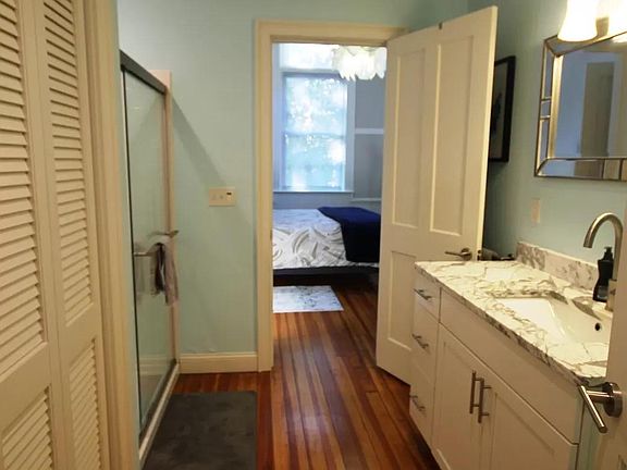 New and truly unique renovation of a 19th-century schoolhouse, the Almy School offers artfully distinct redesigned residences in the perfect urban setting. Conveniently located on a quiet block between Broadway and Westminster and nestled by a mature tree canopy, the Almy School is surrounded by raised garden beds and a private fruit orchard. Historic details can be found throughout the completely modernized building.Loft #200 is absolutely breathtaking! Its expansive open concept is ideal for entertaining! The kitchen has stainless appliances, granite countertops, and a wet bar. Enjoy natural light from 12-foot cathedral ceilings and oversized windows which flood the open-concept space. The loft-style bedroom features a spacious walk-in closet and the spa-like bathroom is complete with in-unit stackable laundry. There is also high-efficiency heating and cooling. The original chalkboard walls in the hallway add a nostalgic touch. Gleaming hardwoods throughout. Step outside and you'll be surrounded by an orchard, raised garden beds...available to those with a green thumb and shared outdoor common space for your enjoyment. Relax by the cozy fire pit while sipping your favorite beverage and grill with friends and family. Walk to many favorites on Broadway and Westminster Street including Nicks on Broadway, Sin Bakery, Great Northern BBQ, Crepe Corner, the West Side Diner and more. ** unit does not come furnished ** Tenant pays for gas and electric. Landlord pays for water, sewer, and trash.