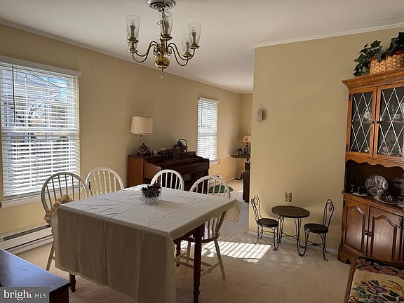OPEN HOUSE CANCELLED!! Beautiful backyard that backs to the woods! This renovated Jefferson model in Leisuretown sounds like the perfect blend of charm and modern comfort! With 2 bedrooms and 2 bathrooms, it offers plenty of space. The granite countertops in the kitchen add a stylish touch, while the wood-burning fireplace surrounded by built-in shelving is ideal for cozy nights. The hardwood floors throughout create a warm and inviting atmosphere, and the bright, sunny floor plan adds to the home's appeal. As you enter, you’re greeted by a large front living room that flows seamlessly into the adjoining dining room—perfect for entertaining or relaxing. The back sunroom offers a peaceful space to unwind while enjoying views of the beautiful backyard. This home is very energy efficient having completed the PSE&G Home Weatherization Program in October 2023 bringing the Equal Payment Plan down to $131 a month. Also helping the electric heat is the "free" solar from the sun heating the living spaces of this home. This is a great home if you want to go the Solar option as the 60' roof (replaced 6 years ago) faces south.