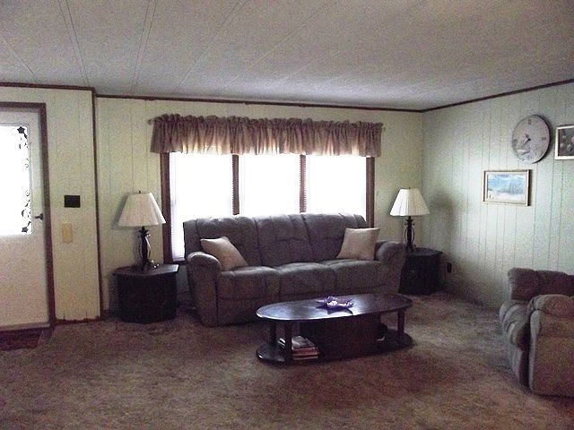 DOUBLE WIDE HOME ON CUL DE SAC with 3 bedrooms & 2 FULL baths ready for immediate occupancy. Open floor plan living/dining room. EIK has custom bench/booth for dinette. Spacious sun room has view to private wooded area behind home. Heat tape helps prevent water pipes from freezing. Third bedroom can be used as office