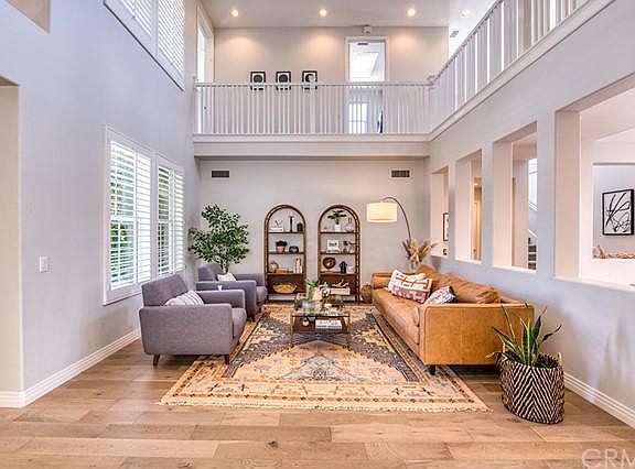 Take a step inside 20 Aquila Way, a completely renovated 5 bedroom family friendly home, and you will be amazed by the soaring ceilings that adorn the bright entryway and formal living room. A main floor bedroom is accompanied by an upgraded full bathroom. The spectacular kitchen offers a large center island plus a peninsula with bar seating, quartz countertops, hidden countertop outlets, white cabinetry, stainless steel appliances including a 6-burner stove and double oven, a butler's pantry and dining nook. The kitchen opens up to the family room that features a fireplace, entertainment built-ins, and custom woven blinds on the windows. Completing the downstairs is a converted one car garage (there is still a 3 car attached garage!) into a music room, office, gym, etc. Upstairs, you will find a fantastic Master Suite that offers a warm ambiance and great views of Coto's hilltops. The spa-like Master bath boasts dual sinks with vanity seating, a spacious walk-in closet with custom built-ins, a walk-in glass shower and large soaking tub. Three additional bedrooms can be found upstairs, one with it's own en-suite and the other two connected by a Jack and Jill dual sink vanity bathroom. A spacious laundry room with ample storage space complete the upstairs. The newly designed backyard is a great place to host family and friends, and includes an oversized spa with a magnificent waterfall feature, a gazebo with built-in bar table, a built-in BBQ center and fire pit. Additional features include plantation shutters, ceiling fans in each bedroom, ideal location on cul de sac street with views, PAID SOLAR and NEW HVAC units. Don't miss the opportunity to see all this gorgeous home has to offer!