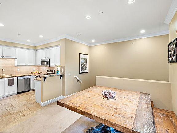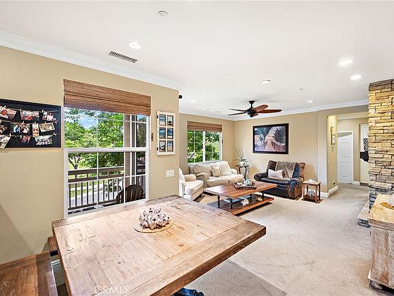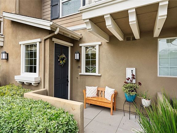 Offering an abundance of natural light, outstanding privacy, and a wonderful location across the street from a park, this elegantly upgraded Berkshire townhome with no one above elevates the art of Ladera Ranch living. The first floor reveals an entry with upgraded woodgrain tile flooring and an attached one-car garage with custom storage (a 2nd reserved exterior parking space is also included). At approximately 1,346 square feet, the two-story floorplan lives like a single-level design with all the living areas on the upper floor including the kitchen, dining area, great room with fire place, two bedrooms and two full baths. The open-concept living and dining rooms seamlessly join an upgraded kitchen that boasts new granite countertops, a new tile backsplash, travertine flooring, white cabinetry, a pantry, breakfast bar, and stainless steel appliances including a range with double oven, a Bosch dishwasher and a counter-depth refrigerator. An upgraded stacked-stone fireplace with custom mantle warms the living room, and a private balcony offers scenic park views. Another covered balcony is showcased in the primary suite that features an upgraded primary bath with custom marble countertops, glass vessel sinks, and marble tile in the shower. Additional appointments include new window coverings, designer carpet, custom paint, handsome crown molding, ceiling fans, a secondary bath that’s also been upgraded with new shower, NEWer AC (less than 5 years old), and a stacked washer and dryer set. Berkshire features a private pool and spa just a 2 minute walk away and its central location in Ladera Ranch makes it easy for residents to enjoy a wide array of swimming pools, parks, clubhouses, tennis and basketball courts, a dog park, and miles of trails for walking, biking and hiking. The Cherry Plunge Pool, Park & Playground is also right across the street from this turnkey townhome and it’s just short walk to highly rated elementary and middle schools, a public library, Poets Park, Terramor Aquatic Park, Ladera Ranch Skate Park, Avendale Village Clubhouse, and Founders Park with its weekly Sunday Farmers Market and the annual Spring Festival and Fourth of July Fireworks & Festival. Walk to School, the Farmers Market, the Fireworks… come see 20 Arabis Court and experience all that Ladera Ranch has to offer.