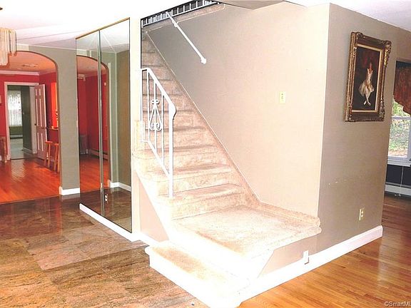 Enjoy open and bright floor plan of this roomy 4 br, 2 1/2 bath colonial. Impressive entry foyer with stone floor. Front to back living room with fireplace and bay window. Formal dining room with panoramic view of private backyard. Modern kitchen with large breakfast bar and huge eat in area/breakfast nook with bay window. Large family room. Huge deck , CAC, garage and security system. Attractive yard with mature trees nice shrubbery. Fish pond ( as is). Super convenient location, close to Merritt pkwy, shops and town center , yet private off beaten pass street. Must see.