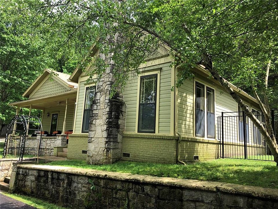 One-of-a-kind Craftsman style bungalow on three and a half lots with a one-car detached garage and additional off-street parking in downtown Eureka Springs. Beautiful hardwood floors, arched doorways, original craftsman style windows and doors, storm windows, wood-burning fireplace, new Heartland refrigerator and dual fuel stove and a dishwasher. New cherry red LG stacked steam washer and dryer. Floored attic for extra storage with easy access. Wonderful covered front porch and a private patio in back. Fenced side yard for pets.