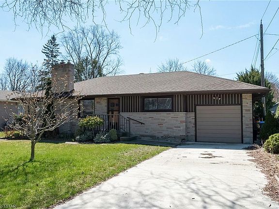 Welcome to 20 Arnella Crescent, a charming bungalow nestled in Strathroy's desirable Northend. This beautifully appointed home boasts a spacious layout and an array of desirable features.Situated on a large, meticulously landscaped lot measuring 61.15 feet by 168.64 feet, this property offers ample outdoor space for relaxation and entertainment. The brick exterior exudes timeless appeal, while the oversized one-car garage provides convenient parking and storage. Upon entering, you'll be greeted by the inviting front porch and concrete walkway, setting the tone for the warmth and comfort found within. The main floor showcases a cozy living room with hardwood flooring and a gas fireplace, dining room, an updated eat-in kitchen & three bedrooms with hardwood floors ideal for accommodating family and guests. The 3 piece bathroom offers convenience and functionality. Downstairs, the lower level offers additional living space, including a family room with laminate flooring and paneling, perfect for gatherings or relaxation. A workshop with a workbench and breaker electrical panel add practicality to the basement area.Outside, the property features mature trees and a chain-link fence enclosing the yard for privacy and security. Two covered patio areas provide opportunities for outdoor enjoyment in any weather. Additional highlights include newer concrete driveway, asphalt shingled roof, vinyl windows throughout main floor and central air conditioning, Carrier forced air gas furnace, municipal water and sewer services. Located on a quiet cul-de-sac close to all amenities (very close to Super Store), this solid one-floor home offers the perfect blend of comfort, convenience, and tranquility. Don't miss out on the opportunity to make this your forever home!