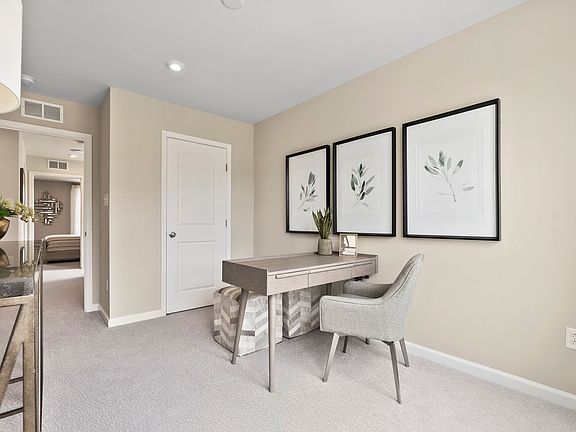 Welcome to The Rutledge at Essence at Stone Spring, where comfort and style meet in this charming townhouse. This 3-bedroom, 2.5-bathroom home is the perfect blend of modern amenities and traditional charm. As you enter the main level, you will be greeted by a spacious family room that is perfect for cozy movie nights or entertaining friends. The open concept layout seamlessly flows into the kitchen and dining area, making it easy to whip up delicious meals while still being able to chat with guests. The top floor features a primary bedroom with an ensuite bathroom that offers a spa-like experience daily. Two guest bedrooms provide ample space for a growing family or hosting visitors from out of town. Another full bathroom on this level ensures no waiting for showers. Photos shown are from a similar home. Come visit and tour our model home today! Some of the selected options in this home include: kitchen island, dual vanity primary bath