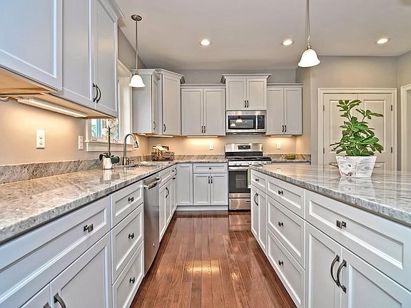 - Kit Dscrp: Pantry, Dining Area, Flooring - Hardwood, Countertops - Stone/Granite/Solid, Deck - Exterior, Kitchen Island, Stainless Steel Appliances, Recessed Lighting, Slider, Exterior Access, Lighting - Pendant