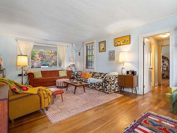 Discover the charm of this gracious cape-style home on just under half acre lot surrounded by mature trees & lush setting. This lovely home boasts the perfect blend of comfort & convenience w/a thoughtfully designed floor plan & spacious rooms flooded w/natural light. Entertain w/ease in the formal dining room & the central eat-in kitchen, ideally situated near to the comfort of the ample living room w/cozy fireplace. Just off the cheerful kitchen is a lovely, enclosed sunroom overlooking the yard w/access to flagstone patios. This main level also includes a full bath & vaulted office which could easily be converted into additional bedroom. Original hardwood floors throughout, including the upper level where you'll find three well-appointed bedrooms & full bath. Don’t miss the basement where the layout extends to a den w/fireplace, workout area & laundry. If you are looking for a great DIY/tinker space you'll love the 2-car garage w/attached storage & workshop. Make this your new home!