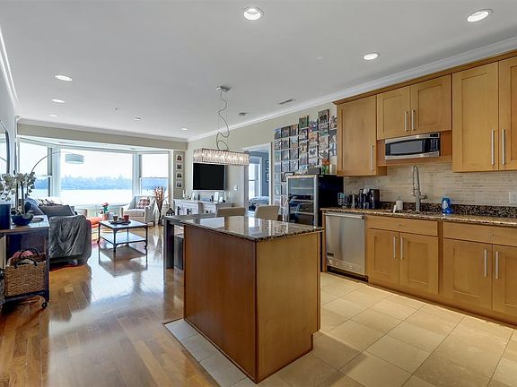 HIS STUNNING APARTMENT HAS AMAZING WATERFRONT VIEWS NOT ONLY FROM THE LIVING ROOM AND KITCHEN BUT BOTH BEDROOMS FEATURE SPECTACULAR VIEWS OF THE HUDSON RIVER AND NEW YORK CITY SKYLINE. TOP OF LINE STAINLESS STEEL KITCHEN APPLIANCES INCLUDE VIKING AND SUBZERO. LARGE MASTER BEDROOM WITH CUSTOM WALK-IN CLOSET AND UPDATED MASTER BATH, HIGH CEILINGS. HARDWOOD FLOOR.AND A BALCONY WITH VIEW. STEP OUTSIDE TO A SUPERMARKET AND RESTAURANTS AND OTHER STORES FOR CONVENIENCE. JUST MINUTE TO FERRY, NJ TRANSIT BUS TO NYC. 1 PARKING SPACE INDOOR GARAGE. BUILDING AMENITIES INCLUDE 24/7 CONCIERGE STAFF, FITNESS CENTER, SWIMMING POOL, LARGE OUTDOOR TERRACE, AND RECREATION ROOM.