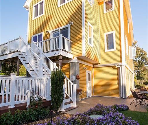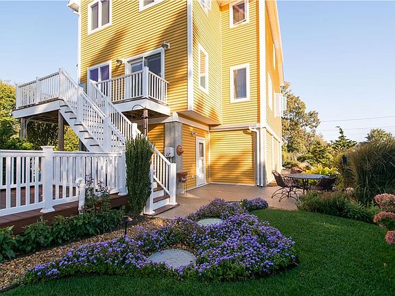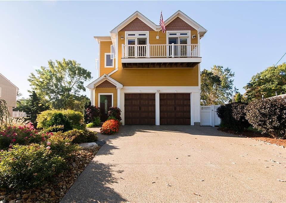 Own a piece of paradise and wake up to mesmerizing sunrises everyday. This Key West style home, was custom built in 2013. It sits 18 feet above sea level, and is located on a private dead end street, 150 feet from Narragansett Bay, with 275 degree panoramic Water views. This sun drenched home has it all and is close to numerous Marinas. First floor has a spacious open floor plan with a Chefs Kitchen, Living & Dining room with a walkout to a 2 level trex deck, with a meticulously landscaped yard with patio. Second floor is home to a massive Bedroom with soaring ceilings, French doors leading to a massive balcony with Ocean views and a full bath. It is currently being used as home office. Your spectacular Master Suite features custom high ceilings, walk in closet & Lavish bath, complete with skylight and Water views. A third Bedroom is also possible in this spacious home. Other features include Brazillian Cherry hardwood floors and Radiant heat throughout, security system, landscape lighting, and whole house Generator. Unfinished heated bonus space in walkout basement, features an additional half bath, which is great when entertaining. All complete with a 2 car garage & over 250 shrubs, ornamental trees & perennials, and just steps from the Ocean. This spectacular Oasis by the ocean awaits! Paradise found!