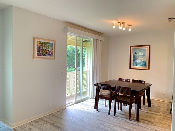 Beautifully refreshed and upgraded Nihilani Hoku unit has new paint, flooring, furniture - and more. It is also one of the rare Hoku units with the developer upgrade of a third bedroom. This unit was designed for EZ care and comfort and comes partially furnished. Just add your own finishing touches! KEY FEATURES: * Brand new LifeProof luxury vinyl plank flooring "Chiffon Lace Oak " throughout entire condo, (except for steps.) * Freshly painted (color- "Winds Breath.") * One of only a few complexes with a two car garage. * Central A/C. * Brand new SS Samsung French door refrigerator. * Brand new couch, chair, coffee table. * Porcelain tile (not ceramic) in kitchen and the hall and downstairs bathrooms. * "Soft close" pull out drawers in kitchen pantry and breakfast bar lower cabinets. * Contemporary Plantation Shutters throughout the unit. * Granite slab countertops in kitchen and bathrooms. * Developer upgraded tile and tub surrounds in master bath. * Developer upgraded mirrored closet doors in both downstairs bedrooms. * Reverse floor plan captures the trades, keeping you cool. Ceiling fans and A/C for those hot days. * Golf course / mountains views with mature vegetation for privacy off both lanais. * Amenities include Pool / Spa / BBQ / covered meeting area. * Some of the lowest HOA's around which include Internet and basic cable Located in a visitor destination area, you can vacation rent, long term rent or move in and call it home. It's a short drive or walk up to the Princeville center where you'll find shops, restaurants and groceries, or a 10 minute drive down to beautiful Hanalei bay. Come enjoy all that Kauai's spectacular North Shore has to offer!