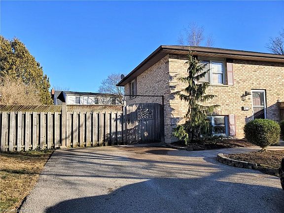 Affordable for first time home buyers or investors. Located on a quiet dead end street in Tillsonburg with easy access to Hwy 19 & Hwy 3 roundabout. This 2 bedroom 2 bath brick semi is move in ready. The upper level has 2 spacious bedrooms and a 4-Piece bath where the laundry is nicely tucked away in the bathroom's double closet. Lower level has an open concept Eat in Kitchen living room with 2-piece bath. The entire house is carpet free and has plenty of storage. Out side has a great sized deck, a shed with low maintenance landscaping. Back yard is very spacious surrounded by mature trees it feels very private. All taxes and measurements approx.