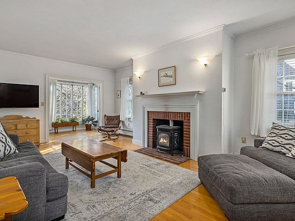 If character and convenience is what you're looking for, this charming cedar shingle Cape on a mature tree-lined street is a must see! Within walking distance to downtown Durham, schools, library, pool and UNH. The 3 bedroom, 1.5 bathroom home has an ideal layout which offers 3 floors of living space. Step inside through the front door and you'll find a large living room featuring hardwood floors, cozy gas fireplace and plenty of natural light from the back sunroom. The sunroom offers floor to ceiling windows and a door to the exterior patio. Walk through the sunroom to the spacious kitchen and dining room. Features include granite counters with bar seating, a large window looking out to the wooded back yard, recessed lighting and an office nook. Upstairs there's a primary bedroom with a custom walk-in closet, two additional bedrooms and a full bathroom. Gorgeous hardwood floors and a built-in dresser are details you will love! The finished Lower level offers bonus office space or guest room, second living area and direct entry garage. The exterior highlights include rock walls, mature garden beds, and a flat yard for playing! The property abuts Stolworthy Wildlife Sanctuary. Brand new boiler installed in 2022 and new roof in 2019. Plenty of storage throughout. 20 Bagdad Road is the perfect place to call home!