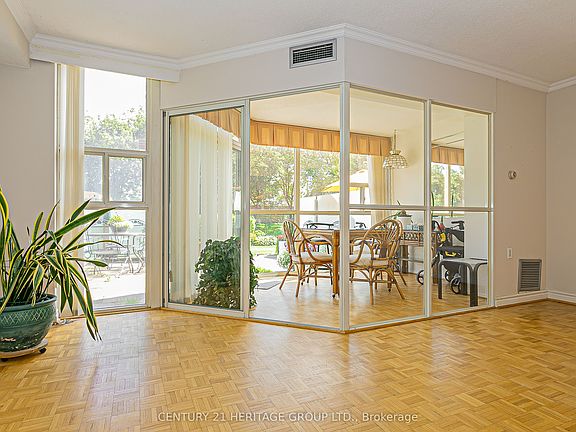 Desirable Richmond Hill Location, Wonderful Family Oriented Community. 20 Baif Blvd is a bright and welcoming established condo building. This suite is on the main floor, at a private end of corridor, over looking the east gardens with a private walk out to a terrace and the garden as well. Quite unique in location and floor plan. The home was modified through the original builder to accommodate a wheelchair access, with wider door ways, and kitchen modifications. The two bathrooms have been renovated. The 3rd bedroom has a custom murphy bed. Practical, clean and ready to move in. Turn key condition. There is a Community Recreation Centre on the property exclusively for the residents, with an outdoor pool, all included in the maintenance fee. Standard internet and TV channel package is included in maintenance and hydro electric, and water. Suite also has two deeded parking spots, close to elevator, and one locker .Close to amenities, Hillcrest Mall, Library, Transportation, Grocery stores, and so much more.