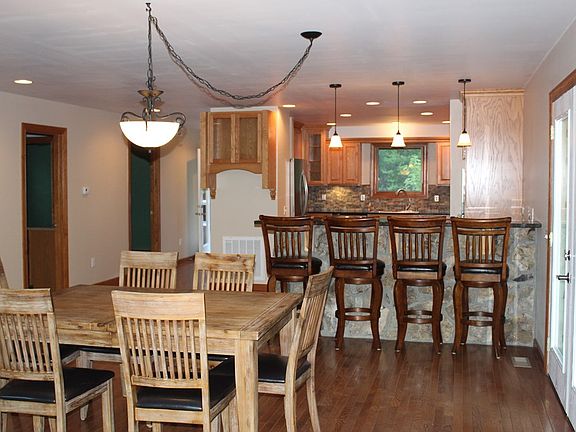 House with 4.49 acres and detached 2 car garage and 2 car garage in basement. Master Bedroom is the whole top level with the washer and dryer and huge bathroom with tile shower and large walk in closet. Has Jack and Jill bedrooms on main floor. Has open floor plan. Has big kitchen with a rock around jenn air, wall unit oven, stainless steel appliances with nice tile back splash. Has a big bar with 4 barstool and separate place for dinning table. A floor to ceiling rock wood fireplace with nice big window beside it. Has porch and deck on three sides of the house. yard is flat with a drive way around the house. have a winter view but you can cut trees and have a year around view. Has a basement with a full bathroom and has a mini split so it would make a great family room. Close to trout fishing, hiking, biking, white water rafting, and only mins from Bryson City, Cherokee and the Great Smoky Mountains. If you want privacy this is the place for you yet no far from lots of attractions. It can be your home full time or part time or make it a vacation rental.