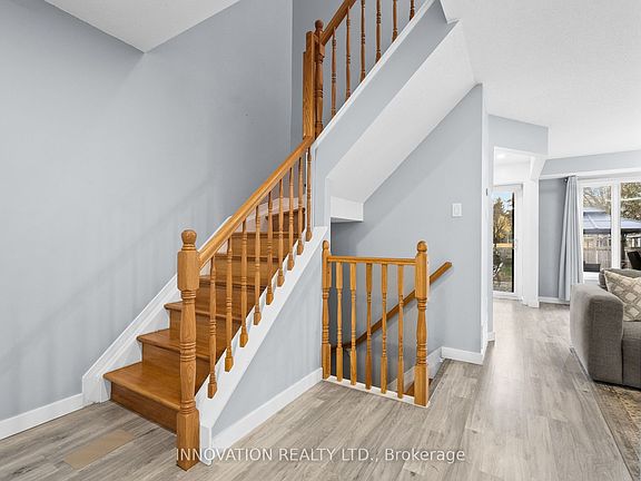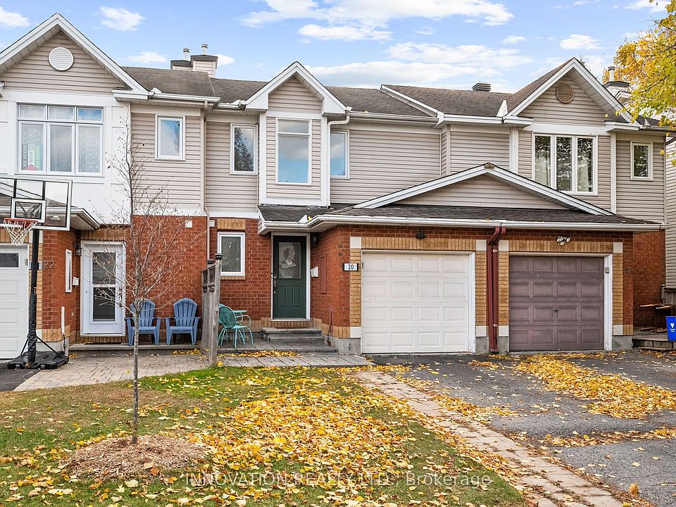 OPEN HOUSE SUNDAY NOVEMBER 23, 2025, 2-4 PM. Updated three bedroom townhome backing on McKinley Park in Kanata North, close to the Kanata Technology Research Park, and walking distance to shopping, restaurants! Updated kitchen with stainless steel appliances. Updated powder room and 4-piece bathroom, carpet free. Fully fenced yard. Just move in! Open concept Living/Dining room with large picture window to gorgeous extra deep, fully fenced rear yard with large patio, gazebo and storage shed. Head upstairs to three bedrooms with an updated four piece bathroom. Primary bedroom with walk-in closet and nook. Finished basement features vinyl flooring and secondary storage room. Central vac is roughed in. Furnace and tankless hot water (2020), rear patio (2023), kitchen reno (2020)