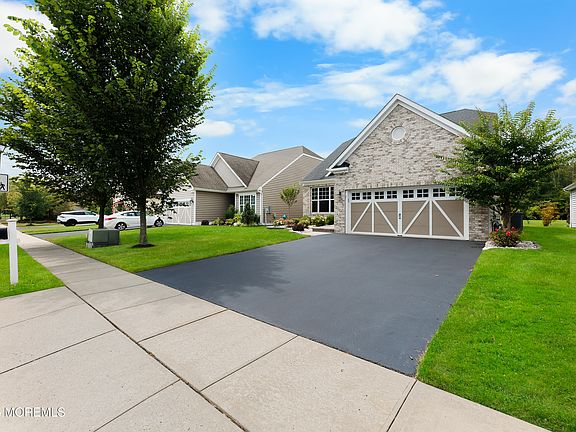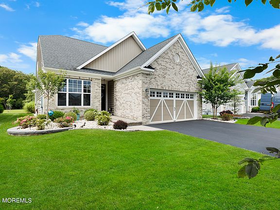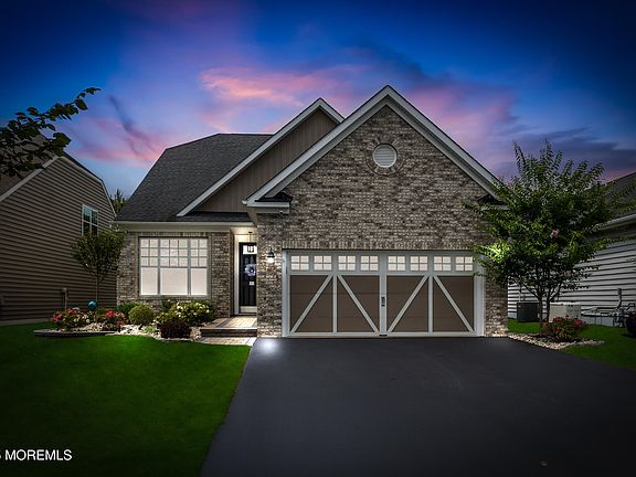Welcome to this elegant Grenada Loft with 3 Bedrooms, 3 Bathrooms, and Office, perfectly situated in the sought-after gated Active Adult Community of Four Seasons at Monmouth Woods. This brick-front beauty boasts stunning landscaping and sits on a premium lot, offering both privacy and curb appeal, with $70,000 in upgrades. Inside, a soaring tray-ceiling foyer opens to an airy, light-filled layout with wide-plank wood floors and thoughtful details throughout. The Gourmet Kitchen is a chef's dream, featuring 42'' espresso cabinetry, granite countertops, stainless steel GE Café appliances, and a wall oven with built-in convection/microwave. The Dining Room, dressed with crown molding and chair rails, is ideal for entertaining. The serene Master Suite offers a spa-like bath with double granite vanities, espresso cabinetry, and a frameless shower. Guests will feel right at home in the inviting first-floor Bedroom and full Bath. Upstairs, a spacious Loft offers a cozy Den, third Bedroom with private Bath and walk-in closet, plus a storage room with an additional built-in-closet. The Great Room, framed with crown molding and a tray-ceiling, flows effortlessly to the paver patio, perfect for morning coffee or evening relaxation surrounded by nature. Professional landscaping enhances the tranquil setting. Enjoy the exceptional amenities at the Clubhouse, including an outdoor pool, fitness center, billiards, card room, and courts for bocce, tennis, and pickleball. This home is more than a place to live, it's a lifestyle of comfort, elegance, and community.