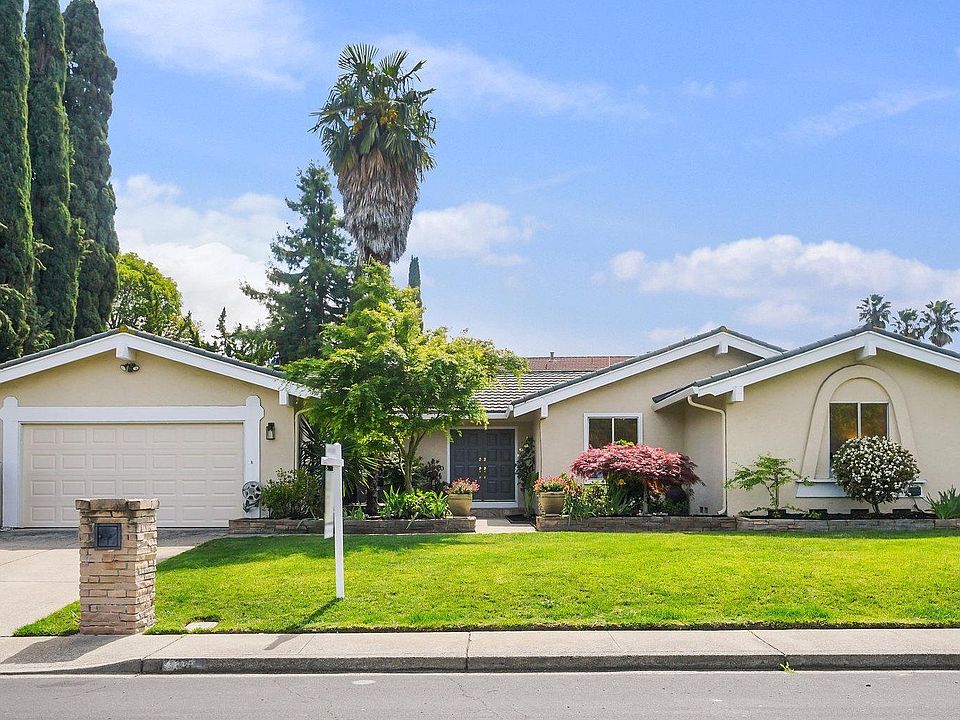 Spacious single level home on a level 10,000 square foot lot in desirable Danville South! Traditional floor plan with lots of room (2,397 +/- SF) to enjoy, unwind and spread out. Vaulted ceilings in the spacious living room creates an open airy feeling with a beautiful view of the pool. Fresh coat of crisp white paint, new carpet, and lots of new contemporary light fixtures are in place for the next owner. The rear yard features a lawn area, pool, and a spot for a veggie garden. The schools in the area are among the most desired in SRVUSD. Easy access to the Iron Horse Trail, parks, Downtown Danville, Costco, City Center Bishop Ranch. Perfect for commuting to the Bishop Ranch and Hacienda business parks and the 580/680 interchange.