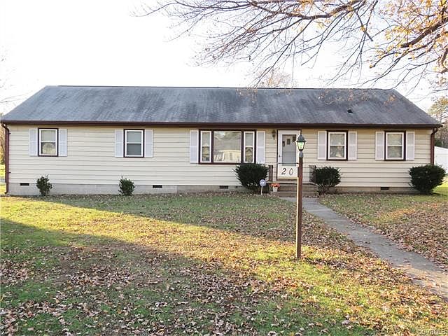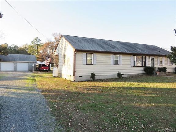 Spacious ranch style home with two car garage on large Henrico County lot! Enjoy large gatherings of friends and family? This family room will accommodate! It is expansive and offers a corner, gas log, fireplace. Eat-in kitchen with pantry and new flooring (refrigerator, stove/oven, and dishwasher included). Washer and dryer stay too! Living room with hardwood floors. Improved full bath in hall with pedestal sink and glass tub/ shower doors. The master suite boasts hardwoods and a roomy full master bath. Rugs and curtains included too! Replacement windows! Garage is 24x28 and features a wood stove, work bench space and cabinets. Also, there is a lean-to and two car carport. Covered back porch too! And oh what a lot! Almost an acre (.84 of an acre) backing up to undeveloped area. Deer are often seen out back! Convenient to groceries, shopping, interstates and bus line. Such a quick commute to downtown Richmond and Richmond International Airport. Heat pump/ central air with oil heat back up. A great find! One year warranty too.