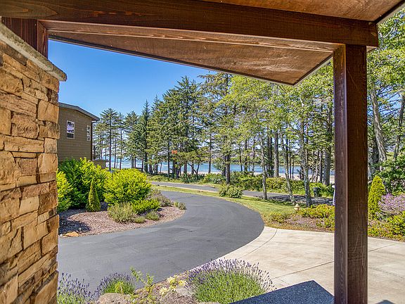 This stunning 3 bed, 3.5 bath contemporary home with elevator in the exclusive Koho community offers breathtaking ocean and bay views. This home offers both convenience and luxury and is a sought after northern end unit with prime privacy and views. With solid oak flooring, vaulted ceilings, and a stone fireplace, the living space exudes elegance. The chef's kitchen features an ocean views, gas cooktop, cherry cabinets and a pantry. Enjoy sunrise or sunset from the balcony with Trex deck and tempered glass wind protection. The primary suite includes an ocean view, walk-in closet, and luxurious bath with a deep soaking tub and travertine shower. The lower floor hosts a private guest suite and third bathroom with marble floors. Complete with a two-car garage with electric charging. Live maintenance free, tucked among the Pacific Ocean and the most pristine bay, within walking distance to all the shops, restaurants and galleries of Yachats. Koho Oregon HOA Fee of $366.00 Covers exterior maintenance of your home, landscaping, and use of clubhouse, fitness room, library/meeting space, billiards and garbage/recycling.
