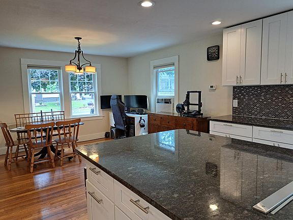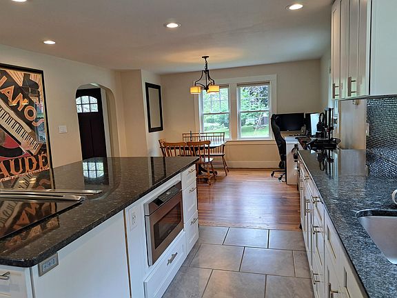 - Ceiling Fan(s), Dining Area, Hearth, Kitchen Island, Natural Light, Natural Woodwork, Wood Stove Insert