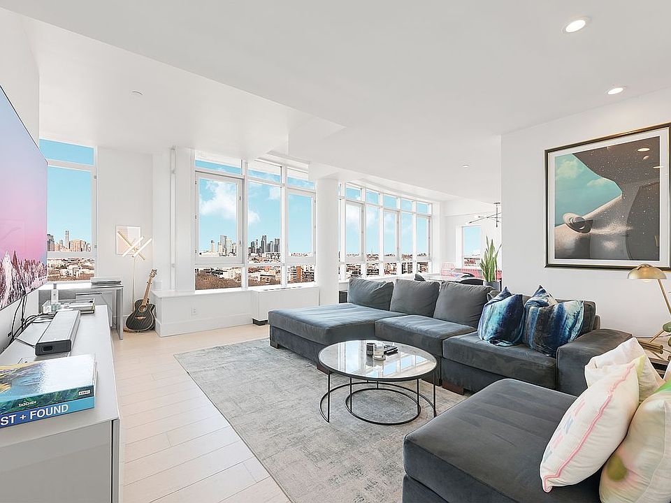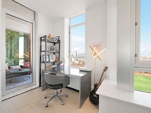 Welcome to this exceptional residence with a serious wow factor! Originally designed as a 3BR/2BA home, this spacious unit has been reimagined as a sprawling 2BR/2BA oasis with a long list of desirable features. From the moment you step inside, you’ll be blown away by the unbeatable views from the long wall of oversized windows. This designer's masterpiece is graced with soaring 10-foot ceilings and wide-plank hardwood flooring that flows seamlessly throughout. The unobstructed views of McCarren Park and the NYC skyline set the stage for an unparalleled living experience. The thoughtfully designed layout features two private outdoor spaces at opposite ends of the apartment, allowing for seamless indoor-outdoor living. Both sun-drenched, south-facing bedrooms are designed for comfort, with the primary suite boasting a walk-in closet and an oversized ensuite bathroom complete with a soaking tub, separate shower stall, and double vanity. The second bedroom is equally impressive, featuring two closets and a custom Murphy bed that transforms into a sleek workspace when closed. This home is packed with high-end features, including designer remote-controlled shades from The Shade Store, an in-unit washer & dryer, and an abundance of storage with six custom closets throughout. The spacious open kitchen is a chef’s dream, outfitted with Viking and Sub-Zero stainless steel appliances, a dishwasher, and custom lighting. Don’t miss this opportunity to own a truly uniquely stunning and move-in-ready condo in the heart of Williamsburg! $328/mo assessment expires 12/31/25 $533/mo assessment expires 5/31/26 **Apartment** 1,368 SF 2Br/ 2Ba 1 Terrace + 1 Balcony W/D in unit 10’-foot ceiling height 6 Closets Open Kitchen Dishwasher Luxury stainless steel appliances Wide plank hardwood flooring Unobstructed views of McCarren Park **Building** Elevator 24-hour attended lobby Fitness center Common roof deck Outdoor courtyard Parking garage Bicycle parking Storage cages **Neighborhood** Across the street from McCarren Park – enjoy a running track, sports fields, a dog park, and a seasonal farmers market right outside your door. Trendy Restaurants & Cafés – Williamsburg is a foodie’s paradise! Try neighborhood gems like Lilia, Sunday in Brooklyn, Peter Luger steak house, and Café Mogador. Vibrant Nightlife – tons of rooftop bars, craft breweries and live music venues. Easy Commute – The L train at Bedford Ave gets you to Union Square in just minutes, plus access to the G train for easy connections. Waterfront Views & Activities – Stroll along Domino Park, ride the East River Ferry, or take in breathtaking skyline views. Arts & Culture Scene – Accessible galleries, performance spaces, and street art create a unique vibe. Boutique Shopping – Find one-of-a-kind fashion, vintage stores, and local artisan markets. Fitness & Wellness – boutique gyms, yoga studios, and wellness centers.