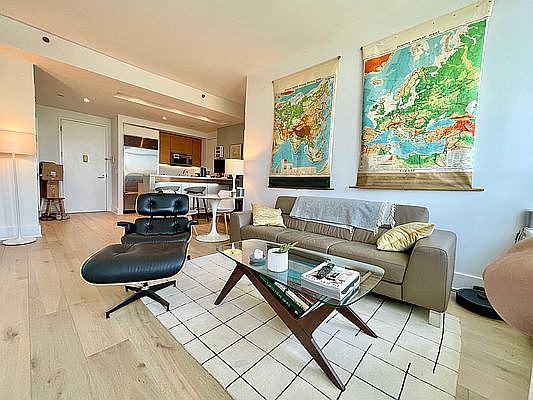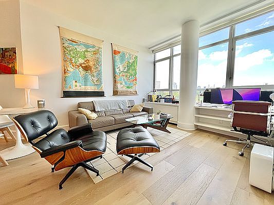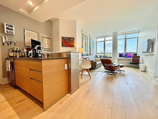 **Stunning newly renovated One Bedroom in Williamsburg overlooking McCarren Park with breathtaking views of the Manhattan skyline.** The picture-perfect unit at 20 Bayard is fully furnished and turn-key ready. With space enough for the many moods and moments of Brooklyn living, multiple layout possibilities provide options for living, working, and hosting. The apartment is dressed to the nines with new hardwood floors, 10'6 ceilings, custom-built shelving window-sills, and a washer/dryer in-unit. Enjoy a full-sized living room with an office nook overlooking the city, a large bedroom with more views, and an open chefs' kitchen adorned with Calcutta gold-marbled countertops and backsplash, a stainless Sub-Zero refrigerator, Viking range, and built-in microwave. The full-service luxury building at 20 Bayard has 24/7 front desk service, a parking spot, a package room, a gym, an immaculate garden, and a sprawling rooftop perfect for warm weather hangs. Enjoy living right in the heart of the neighborhood with easy access to the best Williamsburg has to offer. Contact Zach to come take a look today. Smoking allowed:No
