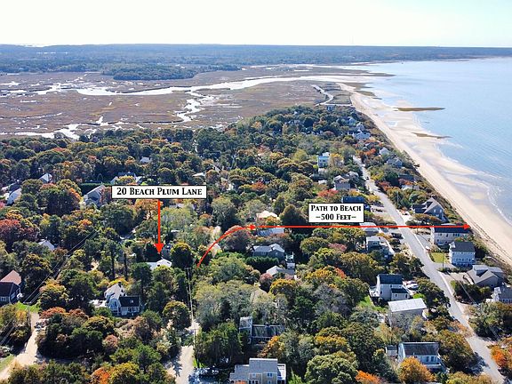 Located just steps from the beach and available for the first time, this enchanting 2BR/2BA year-round retreat combines colonial and modern design elements, which endow the home with a handsome and distinctive visage. Unlike the slew of revamped mid-century cottages that come to market, this home was built from the ground up in accordance with contemporary construction requirements. Its outstanding condition, attention to detail, and material quality are evident throughout, with Andersen windows & doors, multiple skylights, and recessed lighting. Designed with flexibility in mind, its intuitive layout will cater to your lifestyle needs, including a 2nd floor 10x12 ''office'' (w/closet), which the sellers have used as a 3rd sleeping space... As you step inside, the sunlit open-concept living area exhibits a lovely confluence of colors, tones and textures that blend seamlessly with the cozy warmth of a floor-to-ceiling fieldstone fireplace, providing its visual signature. The well-appointed kitchen features modern appliances, ample storage, and barstools for casual eat-in dining. Adjacent, a spacious and deeply appealing 12x22 screened porch expands the home's living area, offering both a serene sanctuary and summertime sublimity. It's here that a nascent love for the Cape's laid-back lifestyle may fully blossom... Upstairs, 2 restful bedrooms, including a large 10x20 primary w/vaulted ceiling and center-hinged patio door to a 6x10 balcony, flank the aforementioned 10x12 "office", which could equally be a study or media room. Did I mention the beach? A vanishingly short distance of just 500 feet leads to an association bayside beach where blue waters billow and evanesce, gulls ever wheel and cry overhead, and the sun, rich as wine, funnels into the horizon. You'll enjoy sun-soaked days, refreshing swims, and sweet surrender... Updates include a recent roof (2022), a convenient storage shed, and a new range (2022), all of which should reduce downstream costs for its new owner. A finished 11x11 Owens Corning "bonus" room, located in the full basement, is perfect for gaming or as a child's play space... The alchemy of inspiration and execution, 20 Beach Plum Lane, could be your gateway to a lifestyle of relaxation and adventure. Happy house hunting!