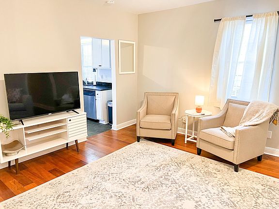 Our condominium is located in the heart of the medical district. A short walk to restaurants, cafes, and nightlife. This historical home was built in the 1820s but has since been converted to condos. This unit was updated in Fall 2021 with new flooring, furniture, and fresh paint. Located downstairs, guests enter the unit via the living room. Open seating area and a television (streaming services only) complete this space. The full kitchen features stove, oven, microwave, Keurig, dishwasher, and fridge. Fully stocked with dinnerware, cookware, and utensils. Initial supply of coffee, sugar, and creamers onsite but additional supplies must be provided by guests. The spacious bathroom has a single sink vanity and walk-in shower. Bedroom includes a queen bed and walk-in closet. Ample storage for our monthly guests! Unit occupied - showings available ONLY on 4/12 10am-2pm . One year lease preferred. Internet included, tenant responsible for water and power. Washer and dryer in unit. One off street parking space available. Pets (dog) ok with fee ($100 per dog, 2 dog max). Available as soon as 7/13/2025. Furnishings negotiable.