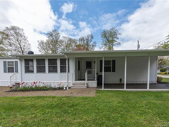 From the moment you enter this ranch style home, you will enjoy the updates and cleanliness throughout. Loaded with natural sunlight and an open floor plan, the house is very bright and charming. Kitchen has an eat in area and breakfast bar with lots of cabinet space and a sky light. Living room opens to kitchen and front master bedroom which offers a half bath. Full updated bathroom, laundry room and 2nd bedroom are in the back. As a bonus, this house has an adorable 3 season porch perfect for entertaining or relaxing with a private view of the back and side yard. Home has a carport and covered deck area. Heat is propane with central air. Back yard has plenty of gardens and a really nice shed. House is located at end of street on a manicured and private yard. Note, this is a Sun Community and these homes are classified as mobile homes. Community has on site management offering small park, club house, in ground pool, and plenty of walking areas. There is a monthly fee that covers shared septic, road maintenance, road plowing, club house and pool upkeep, and property management.
