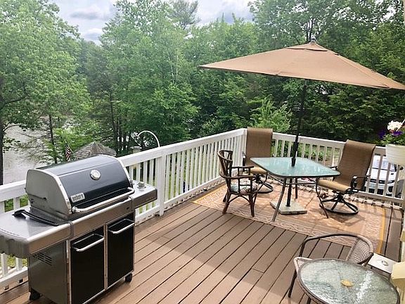 Bring your boat and kayaks to this tidal riverfront home! You will find a peaceful private location at this property on the Lamprey River, with its own t-shaped dock with deep water access across Great Bay to the Piscataqua River right to the Atlantic Ocean, and you can also kayak into the town of Newmarket! This home has a large driveway to fit as many as 6-8 cars, as well as a 2 car garage. Perennial gardens line the driveway and have been lovingly maintained. It also features a gazebo overlooking the river, where you can watch bald eagles, herons, osprey and assorted waterfowl, as well as watch the boaters in the summer! Inside the home is an Open Floor Plan with large kitchen/dining area separated by a breakfast bar. Sliders open out to a deck, perfect for outdoor cookouts with a view. A large Living Room is off the Dining Area. Hardwood floors run throughout the main living area; carpeting in two bedrooms, and updated tiled bathrooms. There are three bedrooms upstairs, and also an added 3 season room accessible by the Master Bedroom, Main Bathroom and Deck. This "River Room" is bright with its vaulted ceiling and many windows overlooking the river. The lower level has a walkout family room with sliders to a patio. It also has a Vermont Castings Gas Stove for cozy evenings. There are two other nicely finished rooms on the lower level, currently used as Guest Rooms, but could be used as home offices, storage areas, hobby rooms etc... They have hardwood laminate floors and closets and each has a window for natural lighting. The 2nd bathroom is on the lower level. Their is a double entry shed for lawn equipment and mower on one side and a separate entry to store tools, outdoor furniture and kayaks on the other. This property has a lot to offer and located in a country setting while just a short walk into the quaint town of Newmarket, with its numerous restaurants, post office, bank, library, yoga studio, quaint coffee shops and specialty food market!