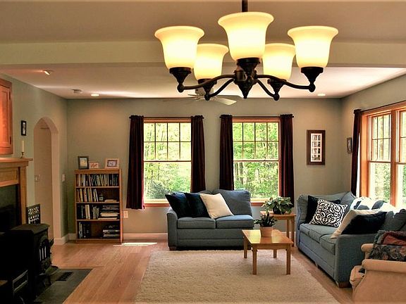 SALE PENDING! Charming 3-4 bedroom home with spacious open floor plan. Nice, quiet neighborhood with private yard yet minutes to Routes 122, 202, and 2, as well as trails for outdoor recreation. Impeccable condition, immaculate, and freshly painted. Includes spacious kitchen with stainless steel appliances and breakfast bar, dining area, and fireplaced living room with beautiful raised paneling. First floor includes additional room and full bathroom, perfect for an in-law or guest bedroom, AirBnB, home office, library, den, playroom, or studio. Energy efficient windows, passive solar, lots of natural light, and two wood-burning stoves for radiant warmth and comfort. Gleaming hardwood floors and tile; brand new carpeting on second floor. Plenty of closet space, including a large walk-in closet with Master bed -- a great space for nursery, office, or reading area. Large, dry basement has potential for finishing. A rare opportunity for this type of home and price in lovely Petersham.