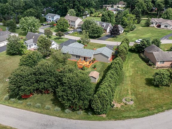 Move-in Condition ranch w/2 car attached garage on cul-de-sac street. Beautifully landscaped lot. So many nice upgrades to this ranch home including: Granite counters in kitchen, newer appliance package, tile backsplash, under-cabinet lighting, new flooring in LR, new retractable awning on deck, newer vanity in primary BR bath, new roof-2022, AC heat pump-furnace 2 yrs. ago. Short distance to I-79, Grove City outlet mall, school, town of Mercer & Brandy Springs Park. All electric home. Lower level heats with electric baseboard. Radon system installed. Armstrong for internet.