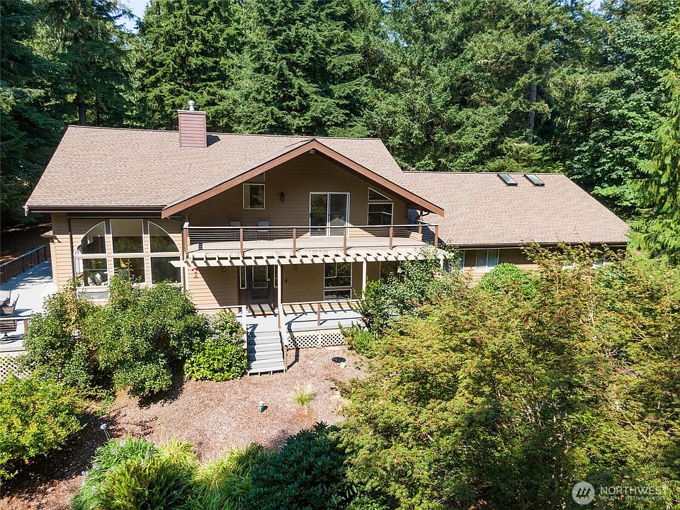 Surrounded by towering evergreens & peaceful privacy, welcome to this inviting home in Port Ludlow that offers space to live, gather & play on 5 beautiful acres. Step inside to a great room bathed in natural light, where a stone fireplace creates the heart of the home. Offers 3 spacious bedrooms each with walk-in closets, a formal dining room, media room & a few flex rooms! Oversized tandem garage is one of a kind! Space for 4 cars & features a 12’ RV/boat door, shop & storage space. Featuring a new whole house generator & pelican filtration system(2019), new roof, gutters & skylights (in 2022). Outdoors, enjoy deer-proof fenced gardens with raised beds, fruit trees, and a separate fenced area for dogs. Includes Beach Club membership.