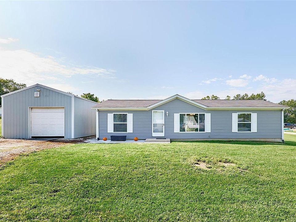This charming 3 bed 2 bath home is situated on a 1/2-acre corner lot, nestled in a tranquil cul de sac. With its thoughtful, split bedroom layout, this home offers the perfect blend of comfort, privacy & convenience. As you step inside, you'll be greeted by vaulted ceilings that adorn every room, creating an open, airy atmosphere. The spacious master suite & bedrooms feature walk-in closets w/ ample storage. The kitchen features plenty of cabinets, a generous dining area & breakfast bar w/ additional seating & more! Step outside onto the large back patio overlooking the fantastic backyard. This outdoor space is perfect for entertaining, enjoying morning coffee, or unwinding. The 24'x18' detached garage is suitable for use as a workshop, storage, or for parking your vehicle. The separate side entrance leading into the laundry room offers convenience and helps keep main living areas clean particularly during inclement weather. Newer A/C & water heater (2019).