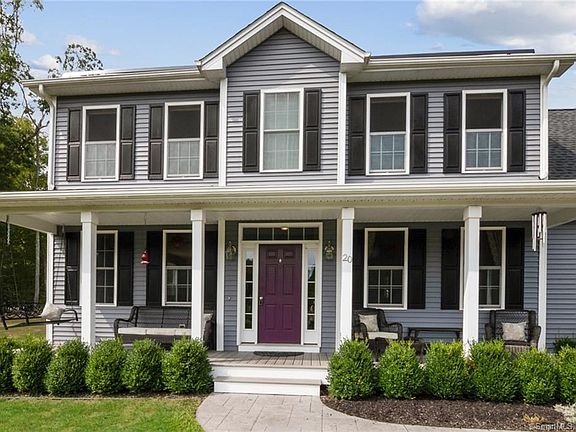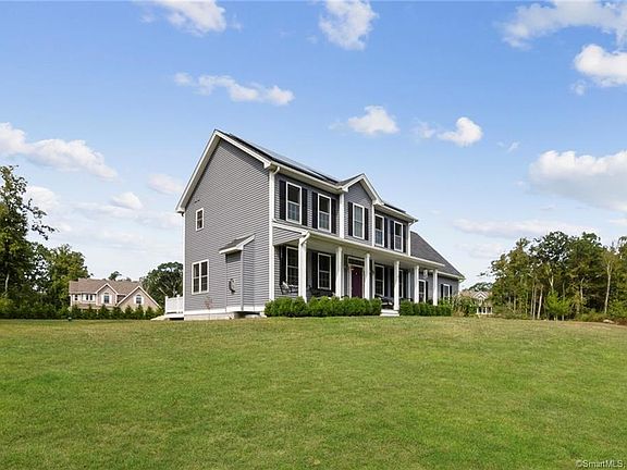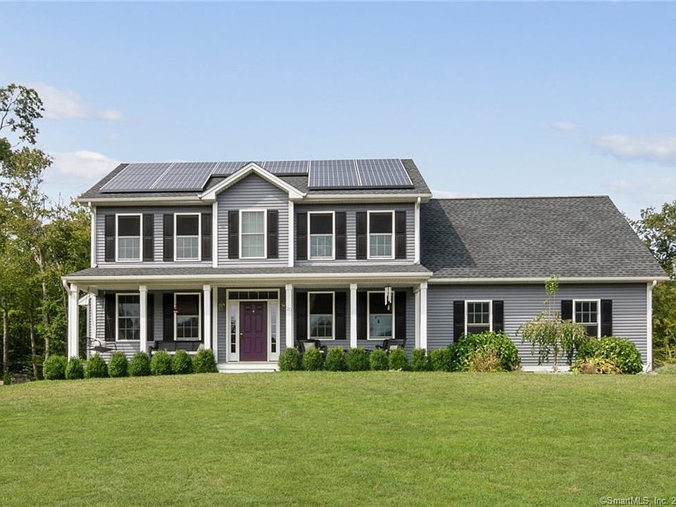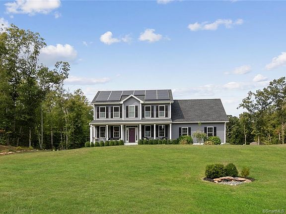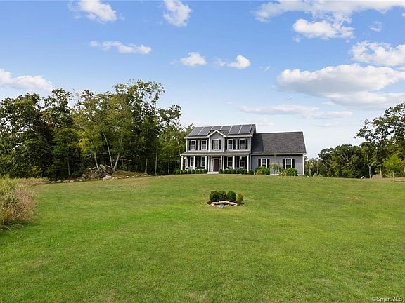 Built in 2015, gorgeous and move-in ready. This 4 bedroom, 2.5 bath colonial, set on almost 2 acres is a pleasure to show. A country setting with idyllic front porch and a large, flat, backyard complete with an inviting stone fire pit. Upgrades include granite counters in the kitchen and all baths, 9 ft ceilings, open floor plan, upgraded appliances and beautiful hardwoods. Solar panels reduce your monthly electric bill, with the ability to sell excess energy at the end of the year. A propane heating system and fireplace further increases utility saving in the winter and central air will keep you cool in the summer. Main ensuite bedroom has a walk-in closet and an inviting spa tub and separate shower. Three bedrooms with deep closets, a full bath and laundry complete the second floor. The basement can be easily finished for even more space. An attached two car garage will protect your cars and offer additional storage. House also has a whole house generator hook-up. This perfect setting is close to 95 for an easy commute to RI and the CT shoreline. Simply perfect, right down to the paint choices