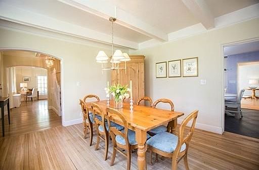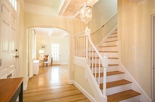 Classic 1930s center entrance stucco Colonial situated in a lovely Wellesley Farms neighborhood offers high, beamed ceilings, hardwood floors and beautiful period detail throughout. This sun-filled property features a honed granite stainless eat-in kitchen with adjoining family room that opens to backyard deck, front to back fireplaced living room with doorways to covered porch, four well-proportioned corner bedrooms and a renovated master suite with a glorious wall of windows and generous sitting room and office. This delightful, airy home has the feel of an English country home with its pale palette and serene surroundings. Expansive fenced yard, close to train, prime commuter location, an absolute gem.