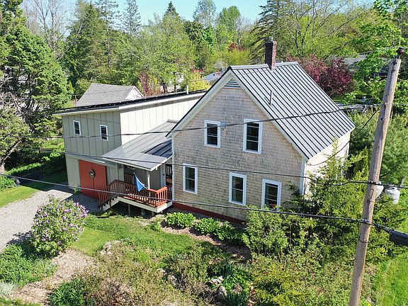 An unexpected in-town gem. The original humble 3-bedroom 1900-cape has been added on to since 2015 with a two-story 17x30 ''Barn'' where the upstairs can be used as Family Room, Office/Studio, or Primary Bedroom, and downstairs contains a 1-car size Garage plus daylight work space with access out to backyard (currently used as an artist studio), and a 9x30 Breezeway with a generous entry-foyer (the dream of mudrooms!), a bath- and laundry-room, and visual connection to the very private back yard that is completely fenced in, and contains numerous fruit trees, berry bushes, and flower beds, and has a neat Amish shed in the corner for all garden equipment. An unexpected small oasis. The deck is accessed both from the breezeway and from the Dining Room, and provides just the right spot to enjoy the South-facing view of the garden. Major improvements since 2015 include: 25 solar panels, metal roof, all new windows, heat pump, totally renovated Kitchen, and much more. (Full list included in Disclosure packet.) Some 50 feet from the door you find Charles Street that offers a truly small-town experience, with minimal number of cars, but lots of kids on bikes, dogs on leashes, and neighborly waving and visiting.