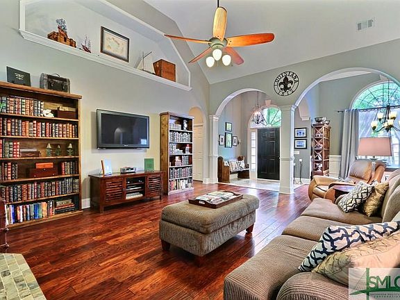 Stunning all brick, 5 bedroom, 3 ½ bath home on a cul de sac in Strathy Hall. Soaring ceilings, arched openings, columns, crown molding, lots of light, smooth ceilings, hand scraped hardwood floors. Recent renovation with many custom upgrades. Great room features a wood burning fireplace, 20â?T ceilings, display nooks, wall mount TV will remain, room wired for surround sound. There is a separate dining room with huge Palladian window. Kitchen features Stainless GE profile appliances, which will all remain, custom tile backsplash, recessed lighting, under cabinet lighting, pull out pot racks, pass through to the great room for open feel. Large master bedroom opens onto back porch. Master bath has been totally renovated with everything new! Master plus two other bedrooms downstairs, two more upstairs. All bedrooms have walk in closets. Laundry room with cabinets. Oversized side entry garage. Over ½ acre, established landscaping with many trees. Covered back porch with ceiling fan.Must see!