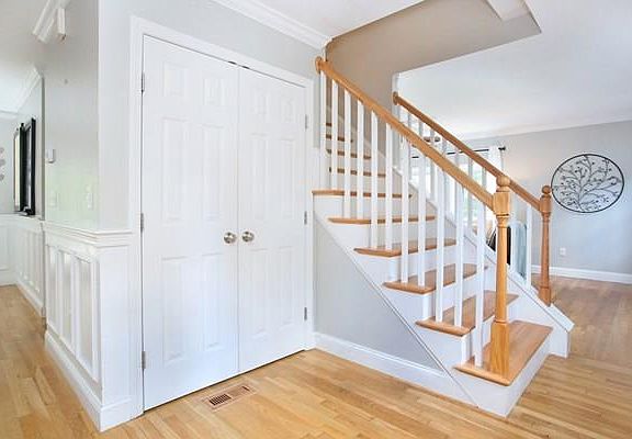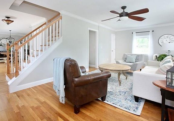 Interior renovations completed. Two walls removed, opening up the staircase & adding a front to back family room. Prime location in the highly sought after Bradley Park neighborhood, close to Hingham Square, commuter boat, and train. A quiet neighborhood filled with cul de sacs. This sun-drenched home was completely remodeled, including exterior maintenance-free Hardie plank, windows, and roof. New custom white cabinets, granite counters, stainless appliances, recessed lighting, and hardwood floors throughout. All bathrooms are tiled with newly upgraded vanities. Open floor plan with 8-foot ceilings, a sprawling deck overlooking the private flat backyard, trees, conservation land, perfect for entertaining inside or out! The walkout lower level with an optional 5th bedroom, family room, laundry, and a full bath. Large walk-up attic with potential to be finished.